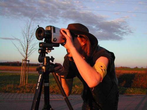 Zweiter Drehtag, Sabine kommt am Set an. |