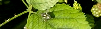 "CIMG1594_Hummel_HS1200.mov"Please respect the copyright of the author! Story/Action A bumblebee is feeding on a blackberry blossom. As it moves to and fro, the plant shakes under the insect's weight. The bumblebee begins to vibrate it's wings, until it gets lift, then extends it's legs and drops of the blossom. It drops down, until the lift increases further, and after swinging into an upright orientation, rises and flies out of the picure. One complete flap of wings (in flight) fills 8-9 frames, equating to 7 millisecond per flap, or a frequency of 137 Hz (which is an audible frequency).