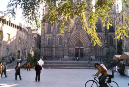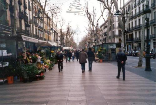 This is a view down the famous "ramblas", an alley with small vendors booths. |